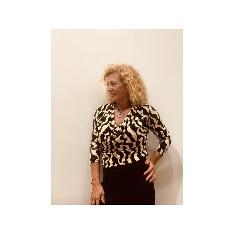 CAMISETA DE CUELLO CAIDO, 95% POLIESTER Y 5% ELASTANO.