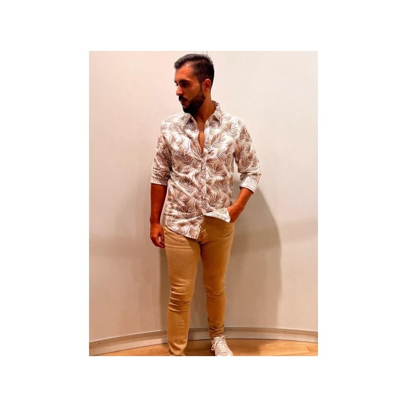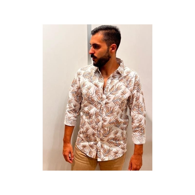 Camisa vestir estampada. - Confeccionada en 100% algodón - Corte Slim fit - Cierre con botones - Cuello cutaway - Manga larga de puño con botones